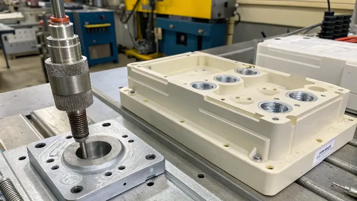 • Insert molding is great for this. Instead of manually screwing in an insert later, you mold it directly into the part. This saves time and labor.