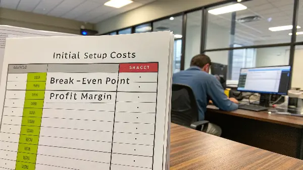What are the initial setup costs and how do they impact the break-even point?